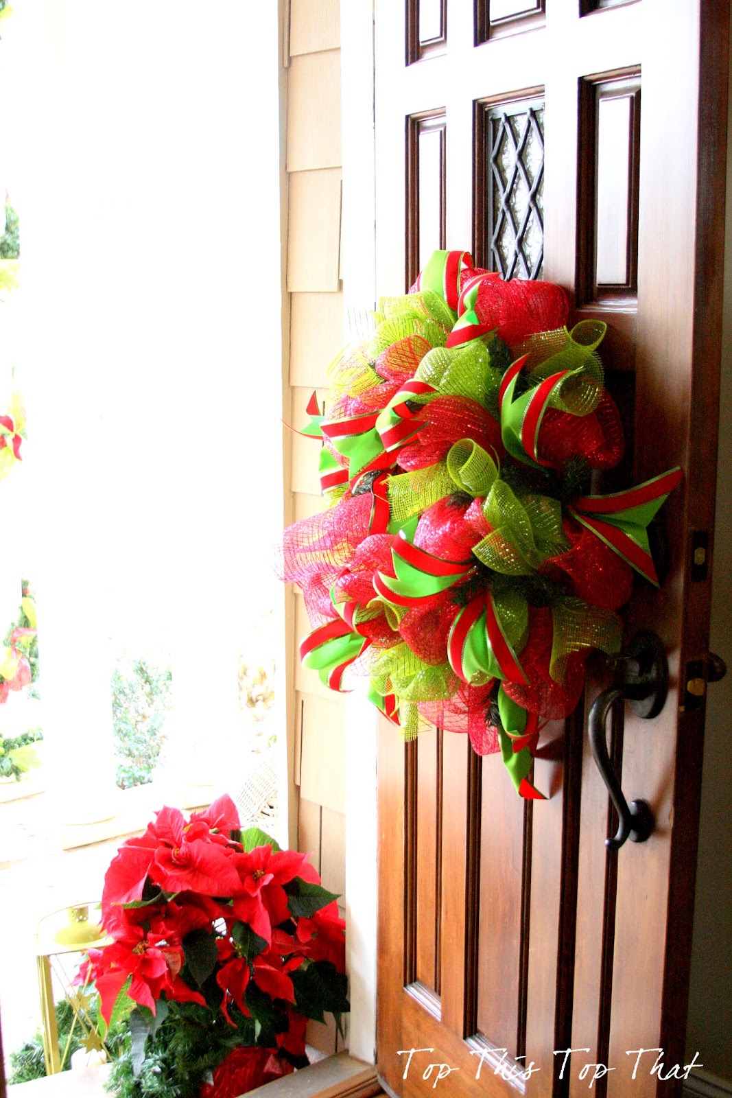 Welcome to my house where no frills meets a bit of glamour this year. Where burlap collides with mercury glass balls. And where poinsettias get dressed in tulle in my favorite silver bowls.